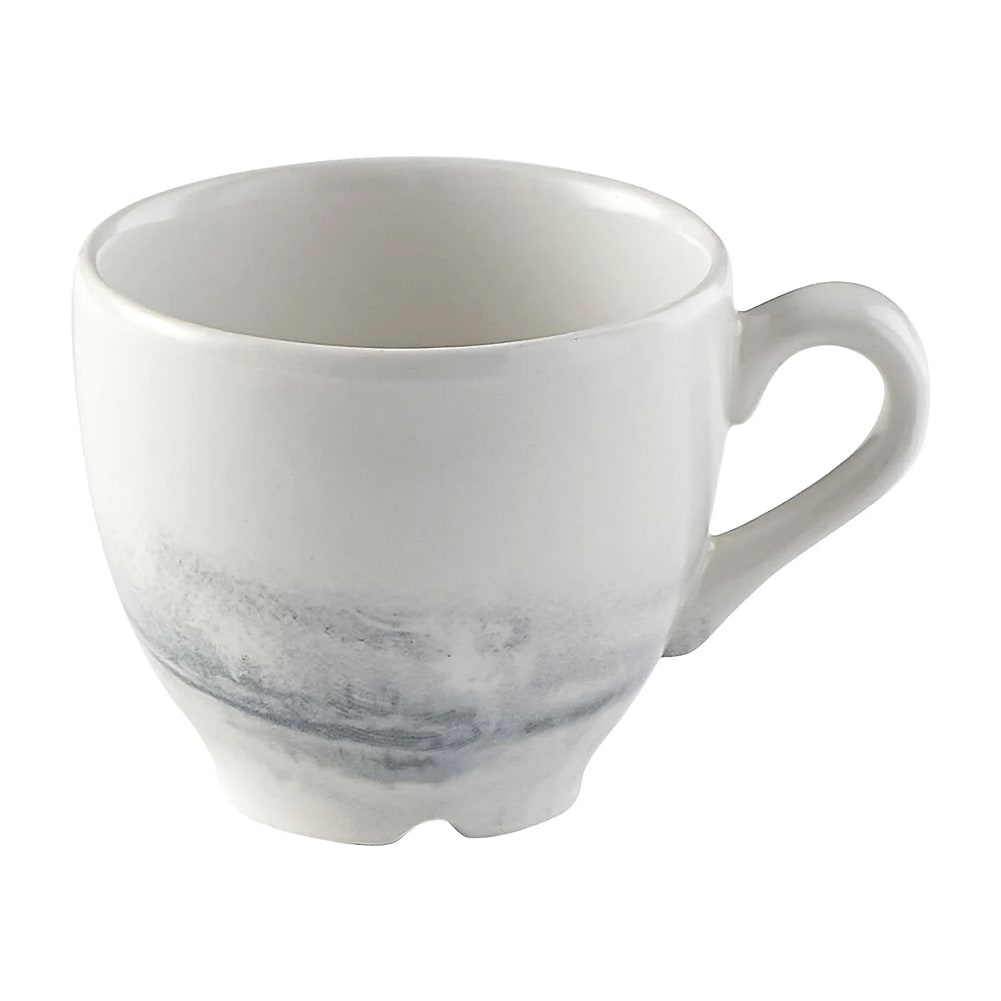 This 3.5 ounce espresso cup is part of the Finca Collection and is a multi-tonal print that mimics the worn textures of rustic interiors and architectural designs. Crafted and creative, Finca is finished in a semi-matte, hand dipped glaze, enhancing the character of the collection and leaving original 'makers marks' on the reverse of each piece. Decorated in-glaze for industrial toughness, The Maker’s Collection is designed for professional use.