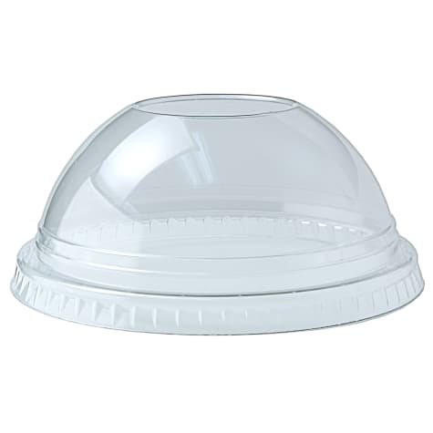 This Dome Lid is made from clear PET plastic and has no hole. It can be used with 12, 16, 20, and 24 ounce cups.