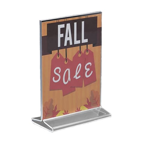 This 8" x 11" T‐Style sign holder displays signs on any counter top, shelf or table. Designed for stability and provides crystal‐clear quality display.