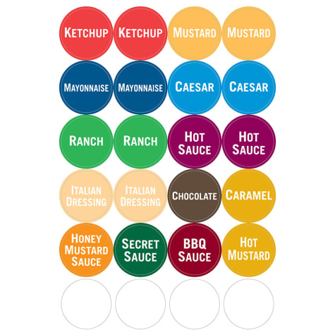 These FIFO Labels are ideal for labeling a variety of sauces and condiments. These labels are made of a vinyl like material coated with a clear laminate on top and a permanent adhesive on the bottom, so they are more durable than other paper labels.