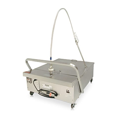 The Keating Portable Filter is crafted to reduce oil breakdown and prolong the life of the oil. Specifically designed for use with front drain fryer models of suitable size, this Portable Filter is easily maneuverable and can be rolled away for convenient storage.
