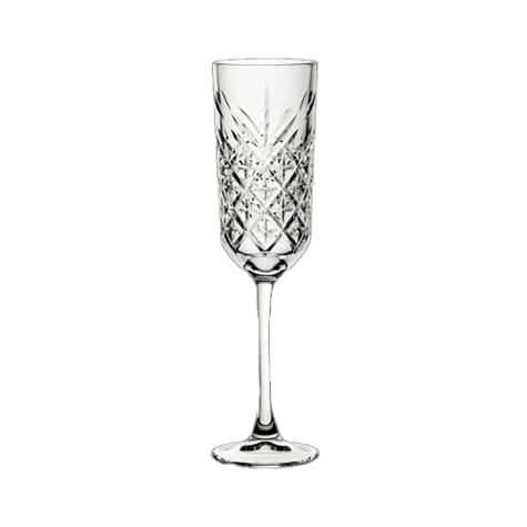 This Pasabahce Timeless champagne flute features an attractive cut glass design that is not only beautiful, but helps provide a good grip. A rolled rim provides chip resistance. All in all a great choice for any bar or restaurant.