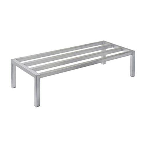This stationary dunnage rack offers a spacious 48-inch by 24-inch platform, perfect for holding bulk food items and supplies. Its welded aluminum construction provides durability and corrosion resistance, while the five support bars enhance stability and airflow. With a 2,000-pound capacity, it is suitable for various storage environments.