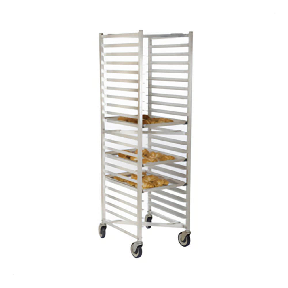 Keep your sheet pans close at hand with this Darling Foodservice sheet pan rack. This rack features a heavy-duty Z-frame that can hold full or half-size sheet pans. It features ribbed sides for easier loading or unloading and moves easily on 5", polyurethane, non-marking swivel casters. The 3" slide spacing provides the room you need for storing standard sheet pans and it ships fully assembled.