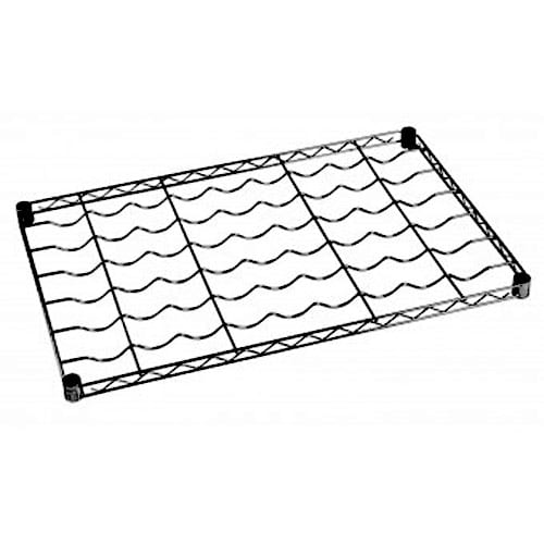 This Darling Foodservice Wine Shelf cradles wine bottles to prevent them from bumping against each other. This shelf is black epoxy coated and has zinc under plating, allowing it to be used in coolers. Its open wire design allows bottles to be easily read and grabbed.