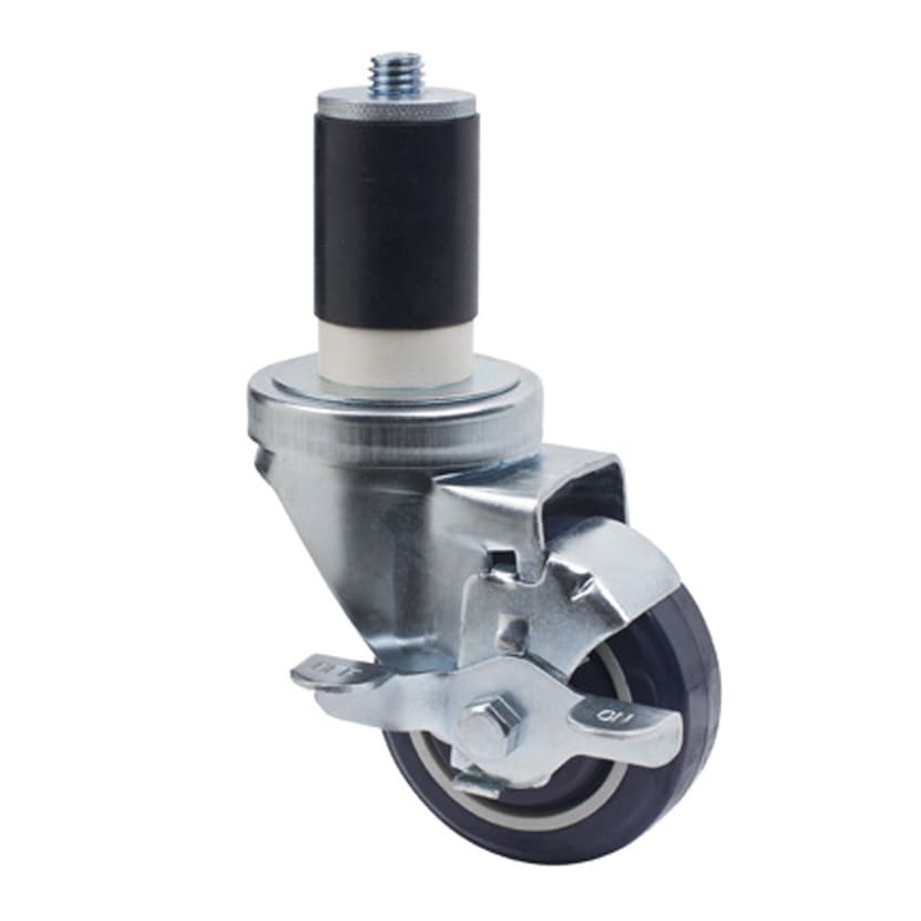 This Darling Foodservice Universal Caster has a 5" polyurethane wheel that is non‐marking. It also has a stainless steel plate and a brake. This caster is temperature resistant from 14°F ‐ 212°F, and has a 250 lb. capacity per wheel.