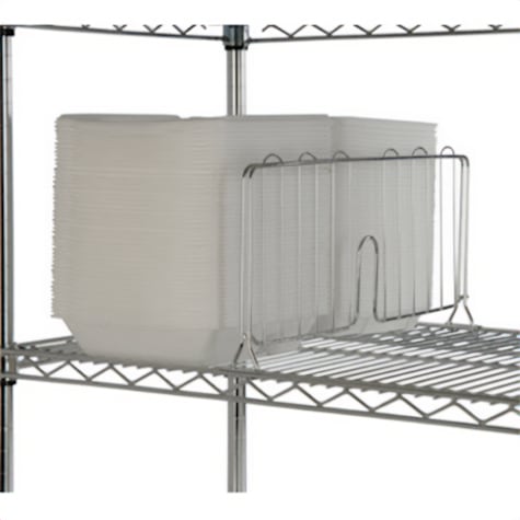 This Darling Foodservice Shelf Divider helps keeps shelves organized. It is a pressure fit divider and has a chromate finish. It is a 24" x 8" size.