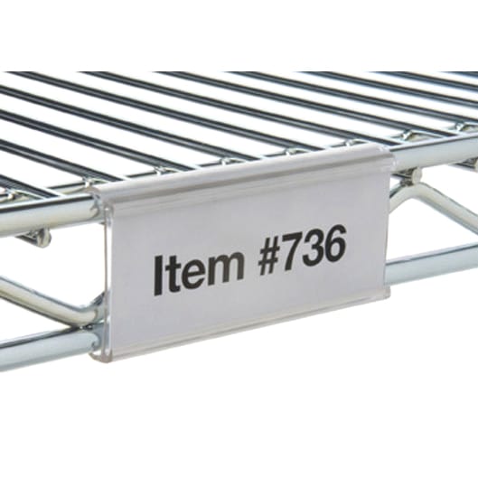 These 3" clear snap‐on labels provide an easy way to identify contents on shelves. Holds most commercial 1‐1/4" labels (Not included).