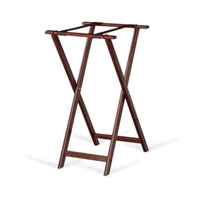 STAND, TRAY, MAHOGANY, W/BROWN STRAPS