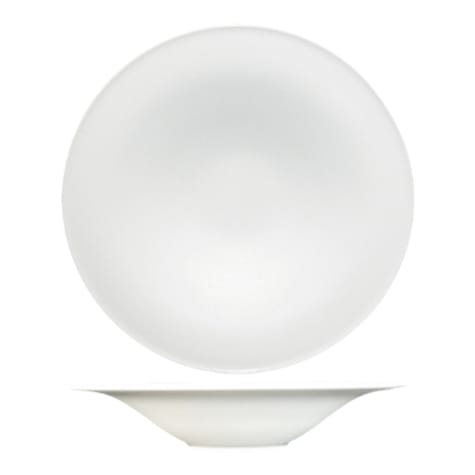 Extra strength has been added to the edge of this Andromeda Vortex Bowl for durability. This creamy white bone china bowl will hold a generous 20 ounces.