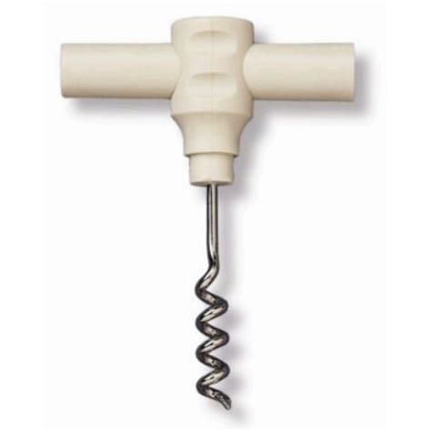This pocket corkscrew from Darling Foodservice is 4‐1/4" long and is made from strong, two‐piece ABS plastic. The protective sheath comes off to form a firm crossbar handle. This corkscrew is a bone white color and is perfect for use in restaurants and bars.