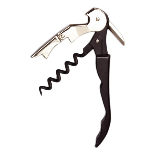 This Darling Foodservice corkscrew is a waiters best friend. It features a unique hinged, double-lever system, a serrated knife blade, and a contoured steel handle. Additional Information: