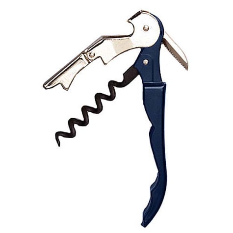 This Pulltap's® corkscrew is dark blue in color and perfect for use in bars, restaurants or hotels. It features a unique hinged double‐lever system and a contoured steel handle.