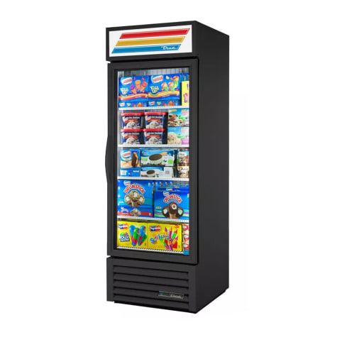 This glass door freezer from True® is designed using the highest quality materials and components to provide the user with an attractive, point of purchase merchandiser that brilliantly displays frozen food and ice cream, resulting in high impulse sales.