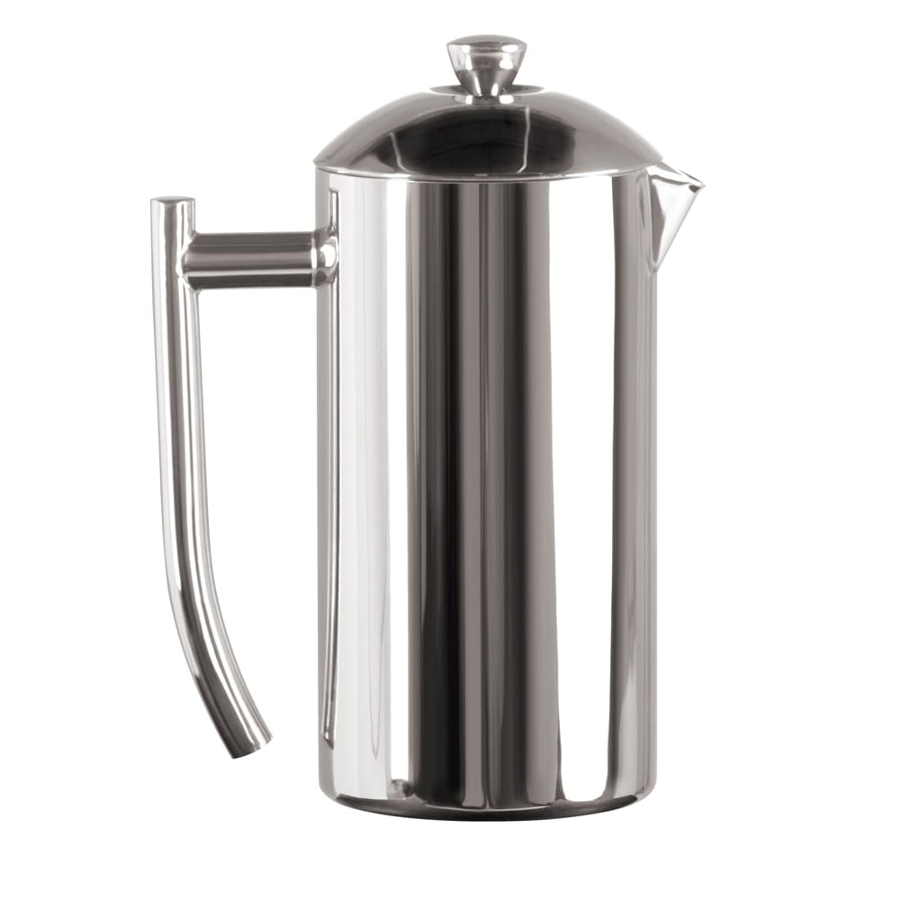 This Frieling Ultimo French Press is made from 18/10 stainless steel and has a double wall design to keep coffee hot. It has a mirror finish exterior and a brushed finish interior. This press comes with a 5 year warranty.