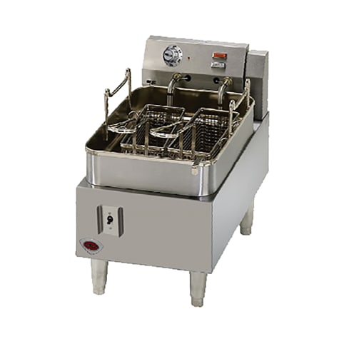 This dependable, durable, and easy-to-use countertop fryer from Wells is designed for commercial foodservice. It comes with two side-hanging, 1/2-size fry baskets as standard components. The deep-drawn fry pot, made of stainless steel, ensures strength, durability, and a long life, and it can hold up to 15 lbs. of oil.