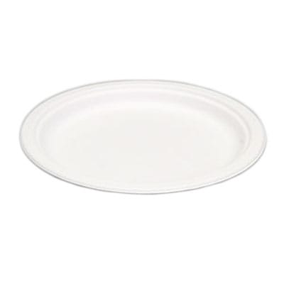 These Genpak® white 10" plates are from the Harvest™ Fiber Collection. This line of  products offers an eco friendly alternative to disposable plates that you can both be proud of using and afford. This 10 inch round plate is a popular size for restaurants, caterers, delis and more.