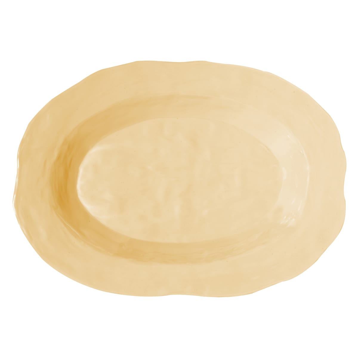 This New Yorker™ squash color platter is made of break‐resistant melamine. It's a great choice for glass cases to display bakery or other food choices for customers. This plate is dishwasher safe and NSF listed.