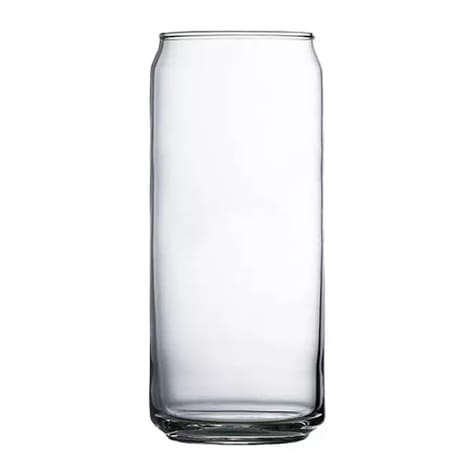 This 16 ounce can glass creates a twist on tradition with the classic can shape in glass form. The novel glass design adds a nostalgic essence to favorite brews, cocktails and soft drinks.