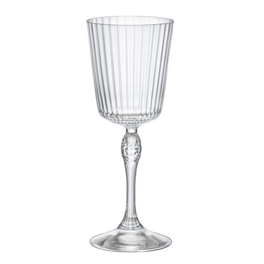 This cocktail glass is part of the America '20s Collection from Bormioli Rocco. These 1920s-inspired glasses bring the glamour of trendy American jazz bars through to today. Where conversation was about art and the ambiance was of unprecedented newness and enthusiasm. All the products are characterised by an elegant and original vintage style, in line with the latest trends, and are embellished with dense facets that develop precious light effects, enhancing the colors of cocktails and drinks.