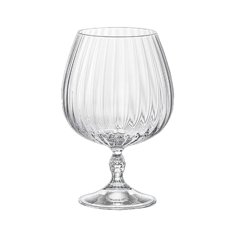 This Cognac glass is part of the America '20s Collection from Bormioli Rocco.These 1920s-inspired glasses bring the glamour of trendy American jazz bars through to today. Where conversation was about art and the ambiance was of unprecedented newness and enthusiasm. All the products are characterised by an elegant and original vintage style, in line with the latest trends, and are embellished with dense facets that develop precious light effects, enhancing the colors of cocktails and drinks.