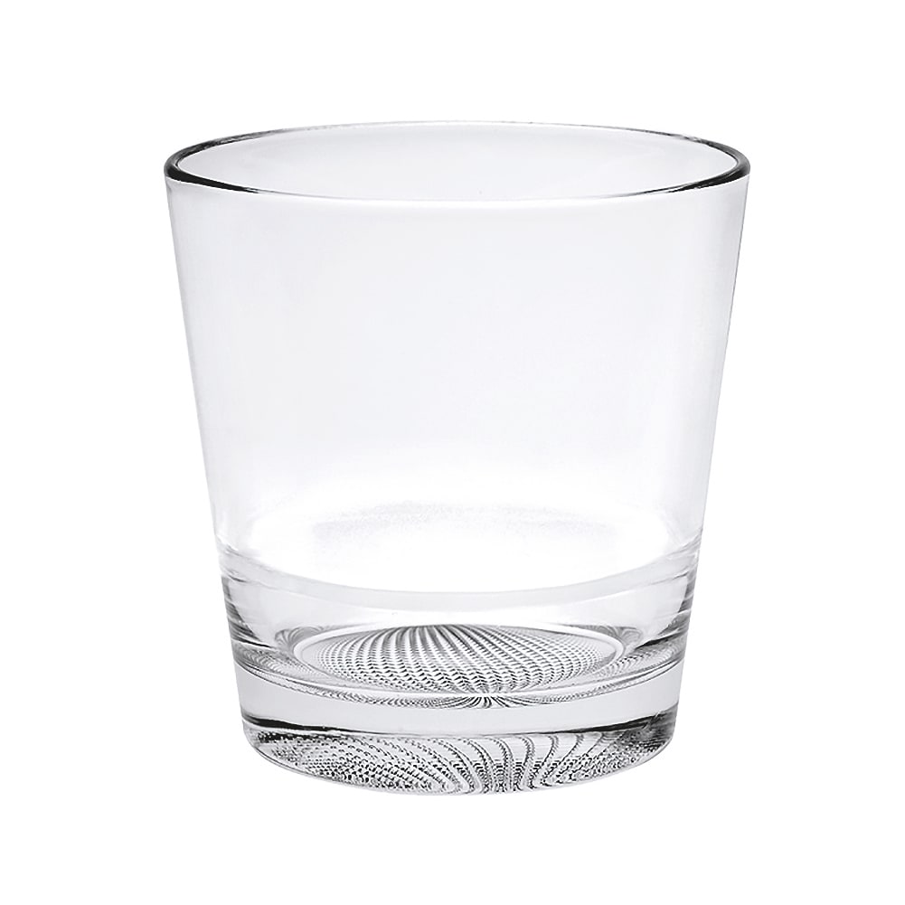 The Prisma Glassware Collection is characterized by a design placed on the external base of the tumbler, in such a way as not to disturb the mixing of cocktails with internal decoration (which would tend to create friction). The discrete internal ring aids in stacking and they also have smooth and completely transparent sides.