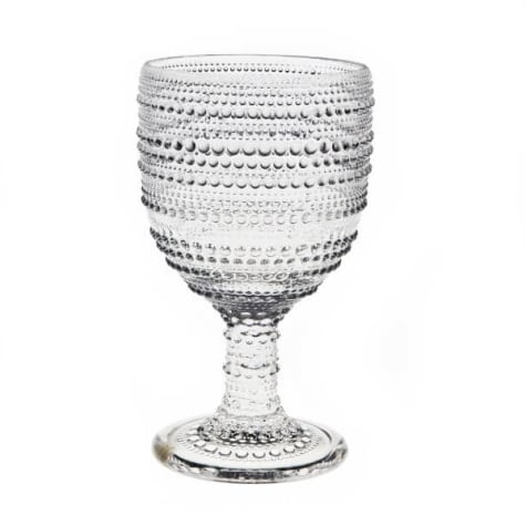 Add an elegant look to your table setting with this 11 ounce goblet glass from Forum Glass. This goblet is part of the Pearls Collection and features a beautiful pearl‐like pattern around the entire glass.