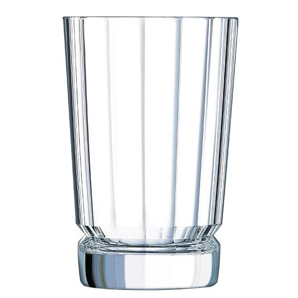 This 12 ounce highball glass from Cristal D'Arques is part of the Macassar Collection and features a sophisticated, cut‐glass design with vintage inspired panel textures. It also features Krysta® extra strong crystal glass.