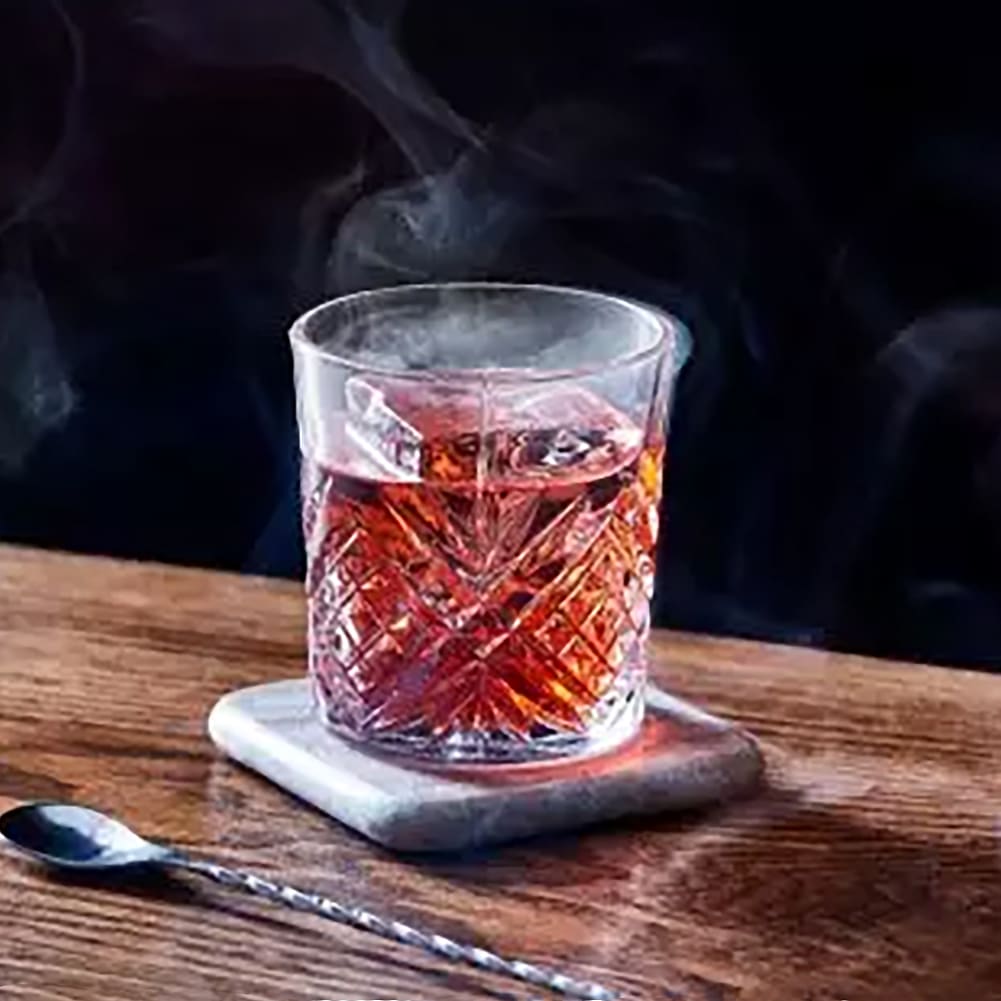 This Broadway double rocks glass features a stunning cut glass design that adds the style and elegance of a vintage era.