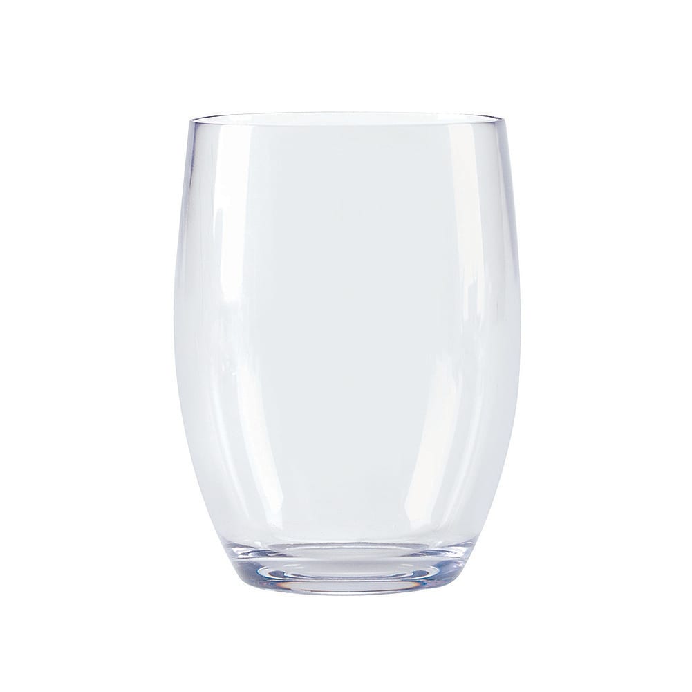 This 12 ounce stemless wine glass from G.E.T. Enterprises is made of clear SAN plastic and is perfect for outdoor dining!
