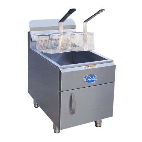 No need to worry about reaching for heat protection pads with this Globe Food LP Gas Fryer. The two twin baskets have insulated cool‐to‐touch handles to protect you from burns. The stainless steel constructed single pot has a drain valve and extension pipe.