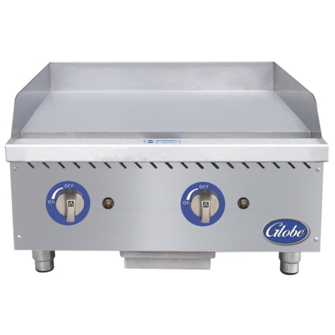 With the manual controls of this Globe Food Countertop Gas Griddle, you will be able to cook multiple foods at different temperatures at the same time. The constant heat under the selected griddle area ensures product consistency.