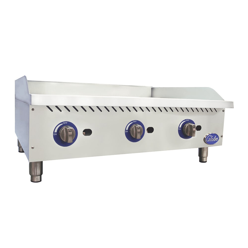The stainless steel U‐style burners of this Globe Food Gas Griddle provides flame every 6 inches. Using the manual controls, you will be able to cook multiple foods at different temperatures.