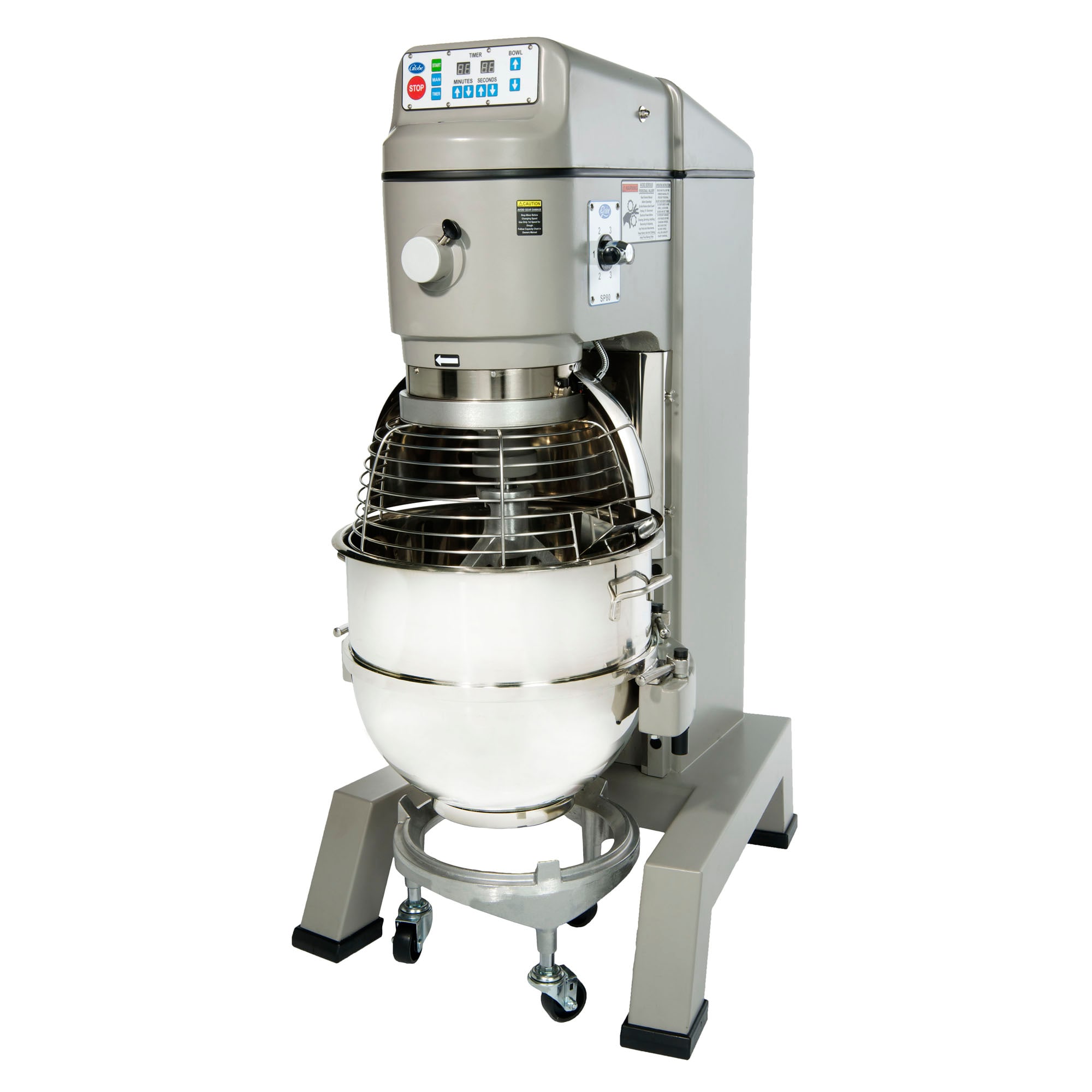 The Globe Food Equipment 4-speed mixer has a gear-driven, high torque transmission and steel shafts and gears that is specially designed for pizza operations. The cast aluminum body ensures years of trouble free use. This mix comes with a 80 quart stainless steel bowl, flat beater, wire whip and spiral dough hook . The bowl guard and lift lever is interlocked and the mixer shuts off automatically when the bowl is lowered for safety.