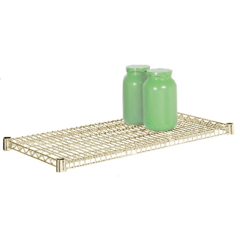 This 18" x 60" wire shelf from SPG International features a GOLD BOND® finish which is a proprietary epoxy-based finish formulated to provide superior corrosion and abrasion resistance. Great for use in dry storage, coolers and freezers.