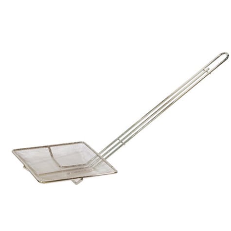 This Gold Medal® nickel plated heavy‐duty square skimmer is great to use when making funnel cakes or any other product being cooked inside a fryer. A mesh skimmer is a must have accessory when cooking, especially when you are frying.