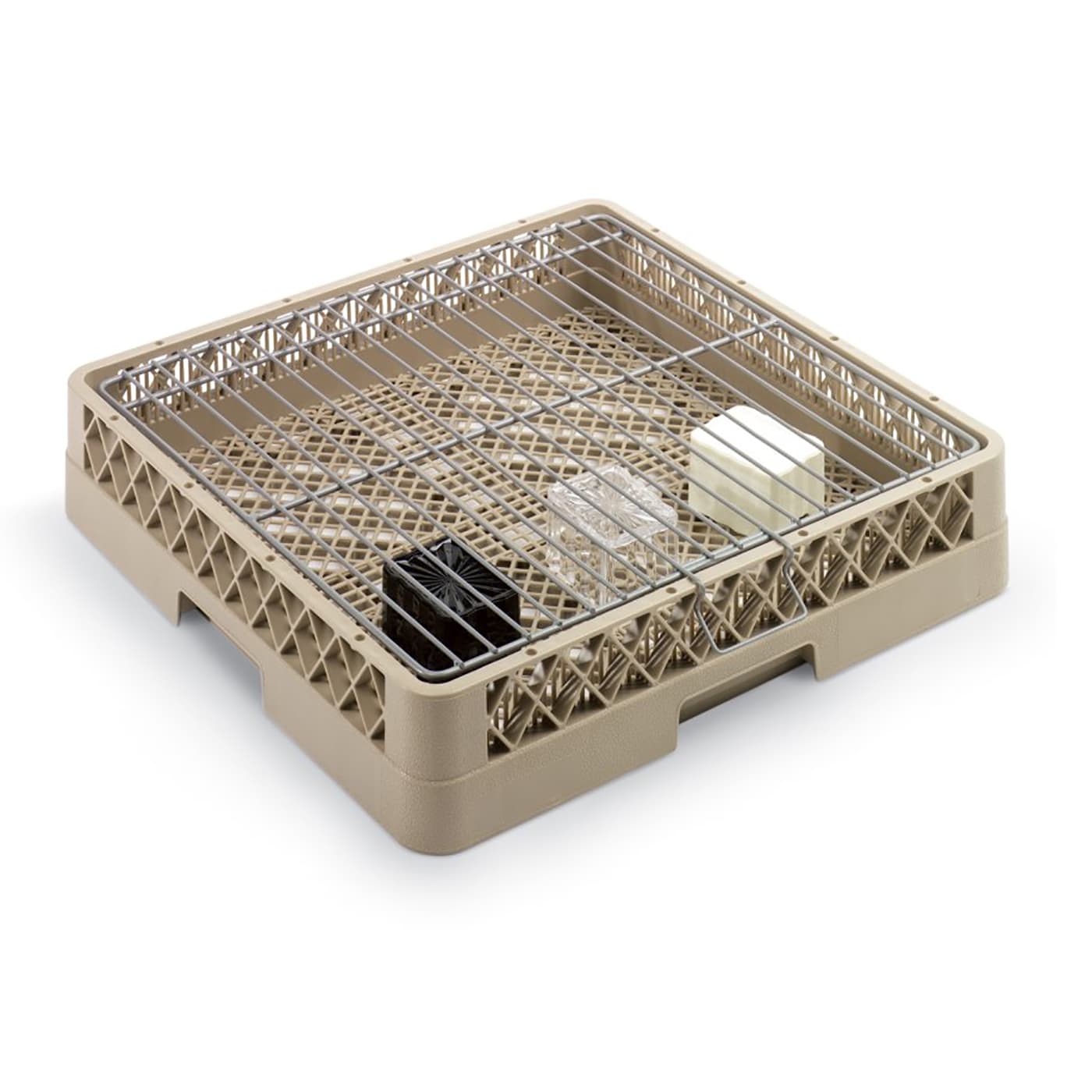 Stop worrying about washing small items with the Vollrath® hold-down grids. These useful grids fit on top of your washing racks to prevent small items from falling out, allowing you to wash even your smallest tools in the washing machine without damage. The smooth coating helps protect items, ensuring that everything is clean and damage-free.