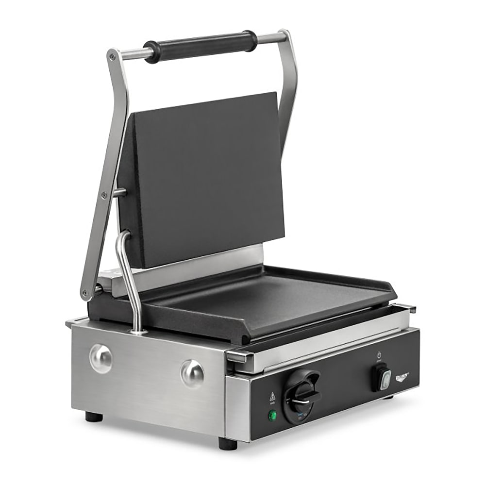 This Vollrath panini sandwich grill has a compact design and flat plates that ensure even browning and great results every time. You will love the versatility that lets you prepare a range of items, from sandwiches to fish, chicken, burgers, and vegetables. The cast iron plates offer great heat retention. The pivot‐action top plate adjusts to food thickness for an even press.