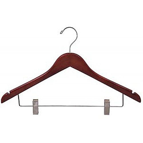 These sturdy, well-constructed hardwood hangers from Hangers Direct® feature notches for straps and anti-stain cushion clips for pants and skirts. This hanger is great for keeping coordinates together. Ideal for strap tops, skirts, ladies suits and dress shirts!