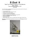 The E-Zcut II freestanding pineapple peeling & coring machine manufactured by Healix Enterprises Inc. Plastic lug is used to catch the peel, core and juice of the peeled and cored pineapple. This machine uses a 84mm blade with a 1.25" core tube, also uses a friction system on all pivit points to allow the handle to stay in the up position. That machine also uses a 2 handed handle, a tether and push rod for the last core, a upgraded suction cup on the base.