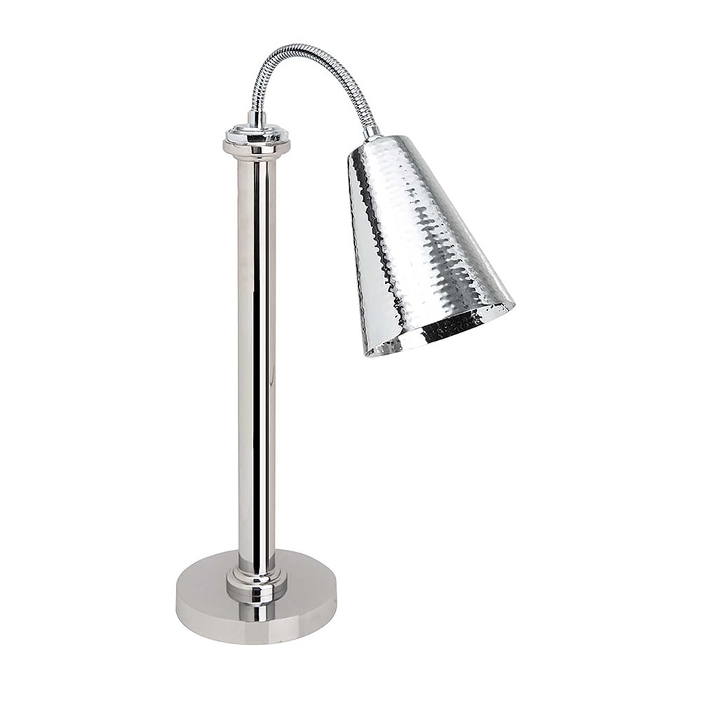 This heat lamp from Eastern Tabletop is the perfect solution for keeping food hot and holding food warm on your buffet. It is a great addition to any venue and ideal for chef stations in restaurants, hotels, country clubs and catered events. Attractively styled, long lasting quality, constructed in 18/10 stainless steel with a heavy weighted round base and flexible neck for precise heating makes this a great fit for your food service operation. Its portable feature gives you the option of using it on your buffet or carving station. The base can neatly slide underneath carving boards for optimal use. Use 110 volts and use 250 watt heat lamp bulbs.