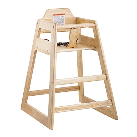This natural wood high chair from TableCraft features a permanent passive restraint that has been added to the front of the chair. The height of the back rest has been increased to keep the child more securely in their seat.