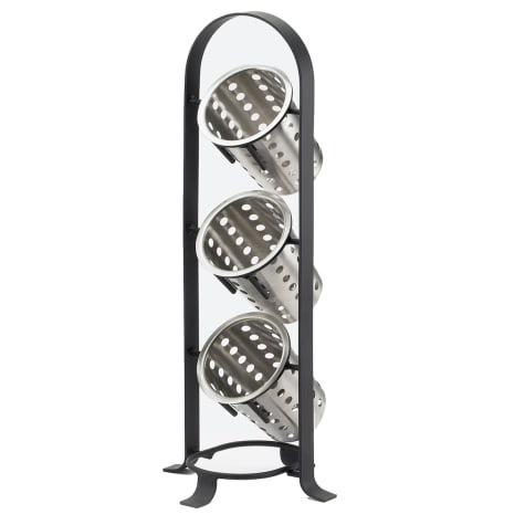 This black cylinder display from Cal‐Mil elevates and creates space to any table while adding a new and modern look to any event. This display holds up to 3 cylinders (sold separately) and is perfect for flatware or condiments.