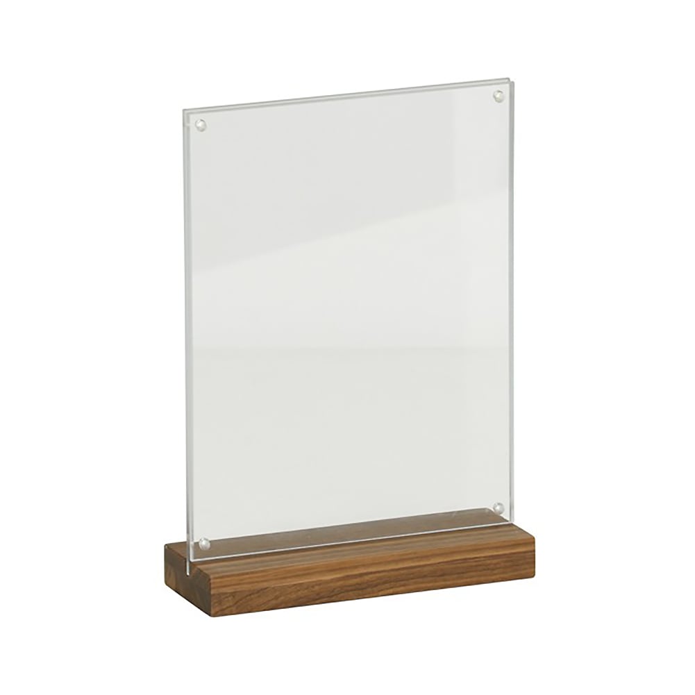 Add a rustic look to your dining area with this walnut sign holder from Cal-Mil. It is part of the Sydney Collection and features a minimalistic wood base showcasing your 8.5" x 11" signage in a sleek way. Great for displaying menus or daily specials!