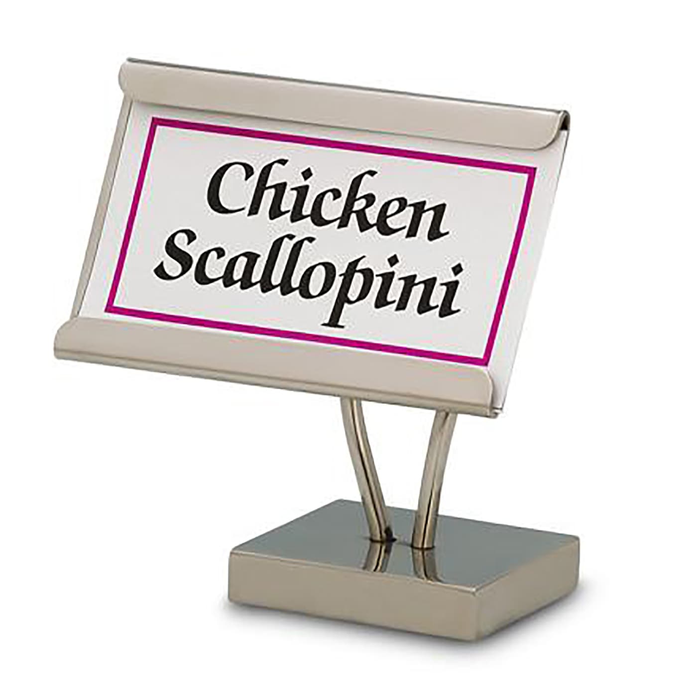 This stainless steel card holder from Bon Chef allows you to elegantly identify contents of chafers or beverage dispensers.