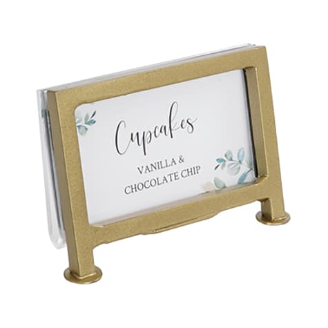 This 3.5" x 2" card holder from Cal-Mil features a gold finish and is perfect for identifying food or beverage items.