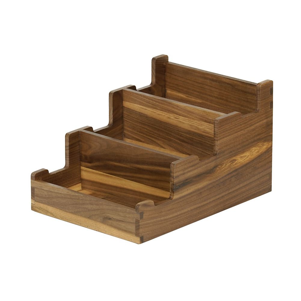 The Cal-Mil 23186-78 is a 3-compartment flatware holder from the Sydney collection. Constructed from handcrafted walnut, it measures 12" x 10" x 3". This holder offers a rustic yet elegant solution for organizing and displaying flatware, making it perfect for upscale dining settings.