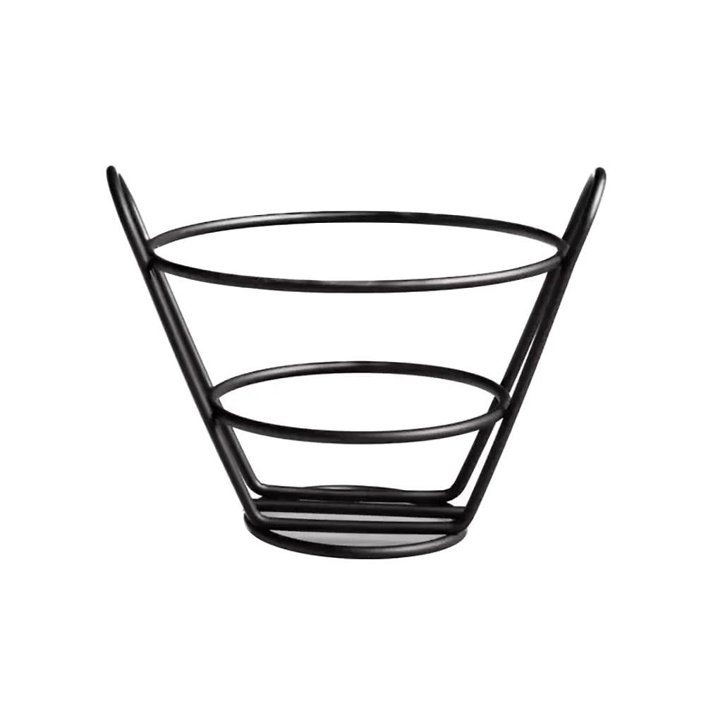 This black French fry holder features a durable stainless steel construction and is perfect for serving appetizers, snack, and of course french fries.