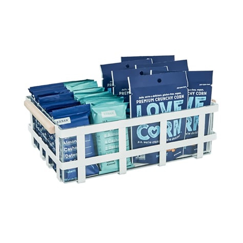 The Cal-Mil 22440-6-71 is a versatile condiment holder with a white metal tray and six clear glass jars. This display measures 12.75" x 8.5" x 4" and is ideal for organizing a variety of condiments and garnishes. Its classic white and blonde accents make it a perfect fit for any aesthetic.