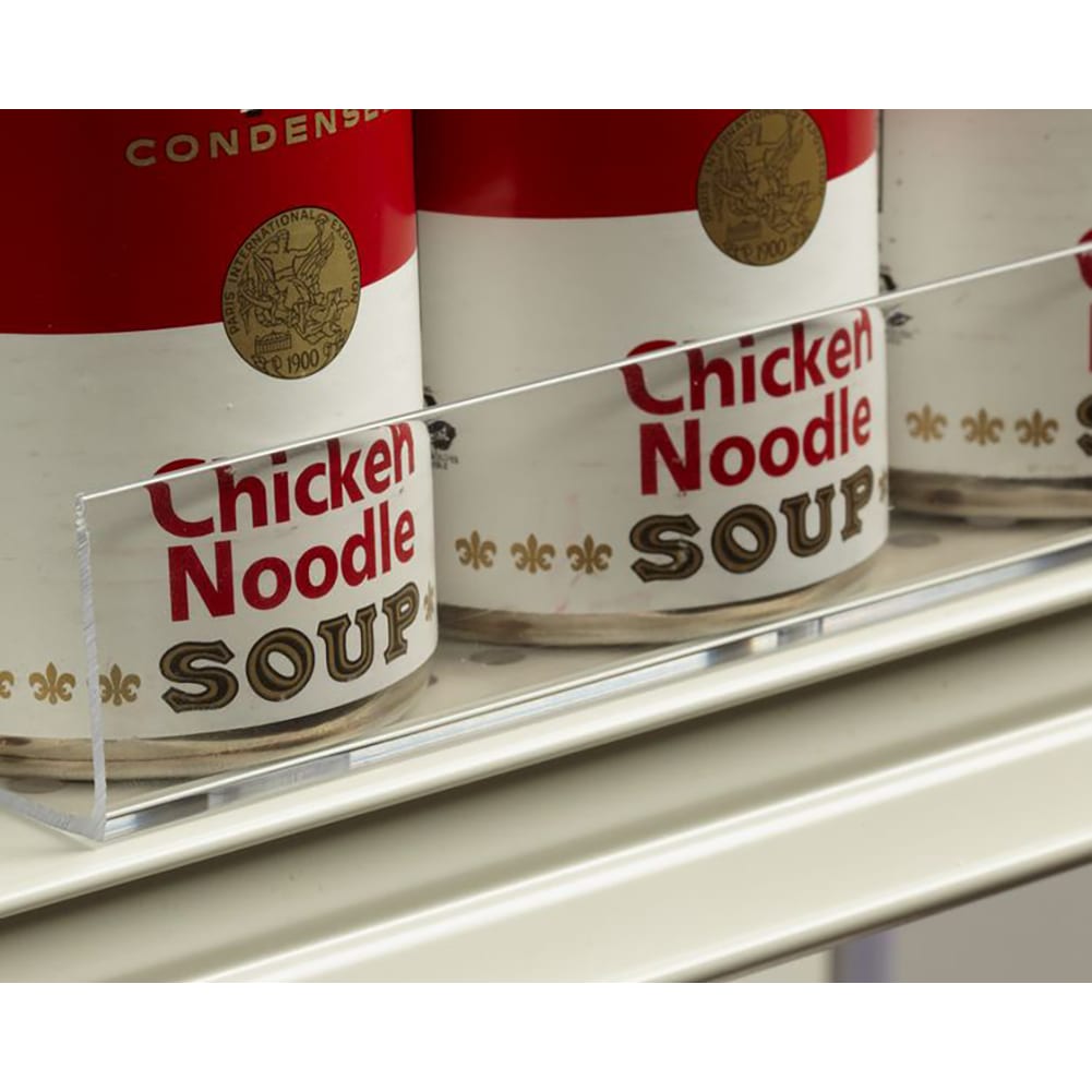 Made of a heavy duty PETG material, this low profile front fencing that keeps products on the shelf. This fence also deters "shelf-sweeping" method of theft. The universal design fits round or diamond‐shaped shelf holes. Fits all standard 36" and 48" long perforated shelves with holes.